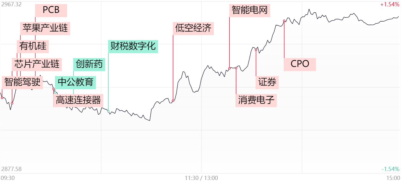 财联社7月10日电,市场全天低开高走,三大指数均涨超1%。总体上个股涨多跌少,全市场超4200只个股上涨。沪深两市成交额7245亿,较前日放量1425亿。1)产业链人士表示,苹果iPhone16系列今年备货目标指引上调至9000万部左右,激发消费电子产业链再掀高潮,智立方、德赛电池、东山精密、闻泰科技等二十余股涨超10%。2)据媒体报道,广达预计在今年第3季末或第4季初开始出货GB200服务器。其中率先受益GB200系列服务器批量出货的铜缆高速连接器方向涨势加速,神宇股份20CM涨停并逼近前高,沃尔核材、胜蓝股份、凯旺科技亦报收涨停。此外,光模块和PCB也双双迎来加速,中际旭创、新易盛、胜宏科技、沪电股份再创历史新高。3)近日,北京市经信局就《北京市自动驾驶汽车条例(征求意见稿)》对外征求意见,智能驾驶产业链迎来凌厉涨势,创业板人气股天迈科技收出T字涨停,进而带动星网宇达、德赛西威等多股涨停。4)中报业绩预增股近期屡有上佳表现,曾走出5天4板的汽配股凯中精密近期再度走出2连板,低价预增电网股广电电气午后上板。而近期例如创新药、光伏等赛道板块的表现不佳,与这些板块内的核心大票中报业绩预期悲观也不无关系。