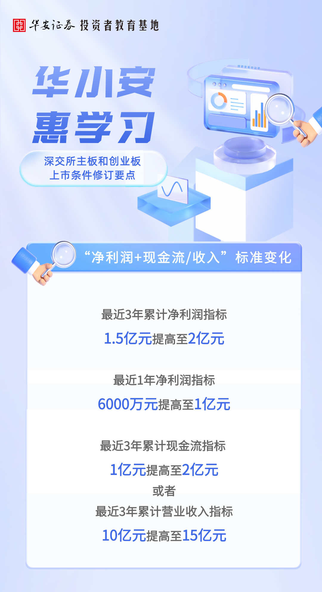 华小安惠学习 | 深交所主板和创业板上市条件修订要点:“净利润+现金流/收入”标准变化