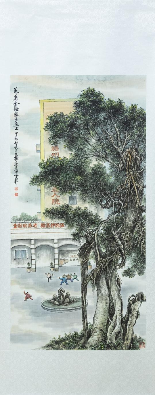 亮点解读:该作品透过苍劲有力的松树,看到老人院一派和谐欣欣向荣的景象,表现出作者对于作品主题的创意和巧思。