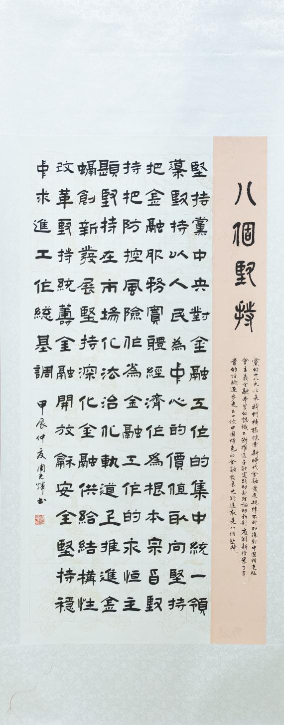 亮点解读:该作品以欧体、柳体为基调,常规式布局,使章法显得简洁明了,统一有序。