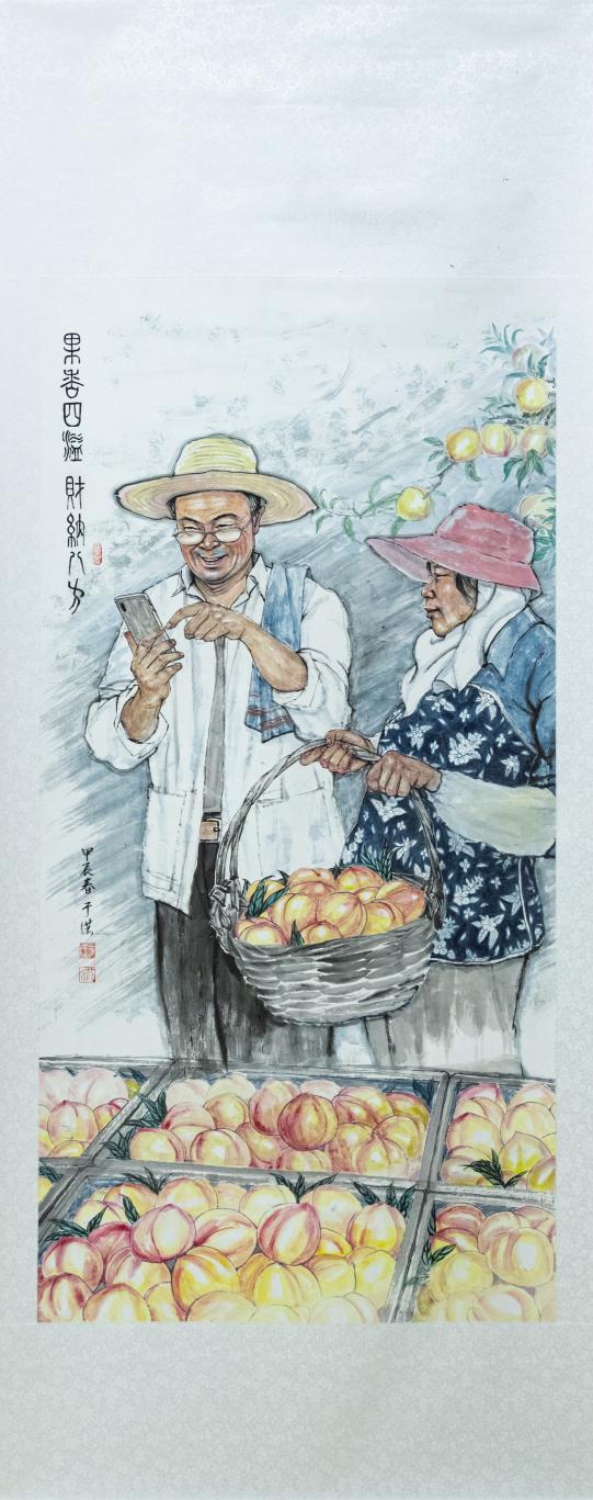 亮点解读:该作品注重对人物形象的刻画,既描绘了农民丰收的喜悦,又展现出数字金融时代下支付方式的便利。