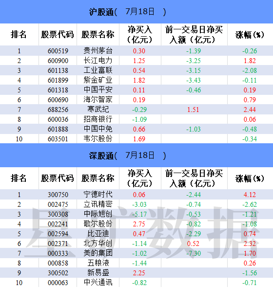 财联社7月18日电,北向资金今日净买入13.52亿元。歌尔股份、新易盛、紫金矿业分别获净买入2.75亿元、2.25亿元、1.82亿元。中际旭创净卖出额居首,金额为5.17亿元。