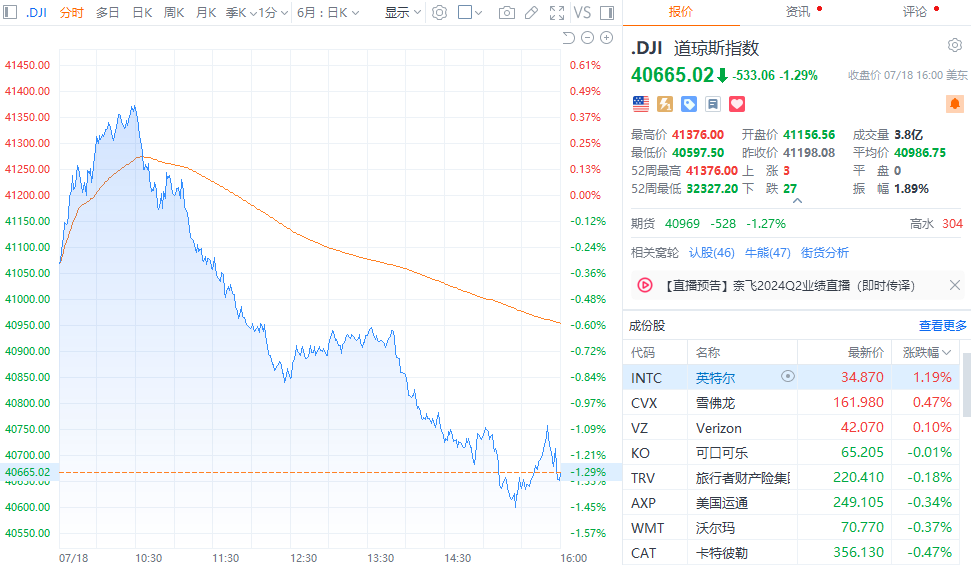 美股三大指数集体收跌 道指终结日线六连涨