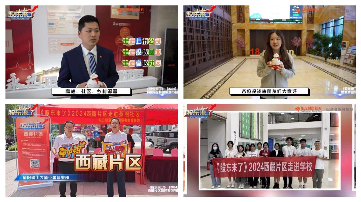 其中,西藏分公司辖区在西藏证监局指导下,携手西藏自治区证券业协会开展户外集中宣传,辖区其他六个地市分支机构分别参加由当地人行、经侦等部门牵头的集中户外宣传活动,同时积极开展《股东来了》活动宣传。