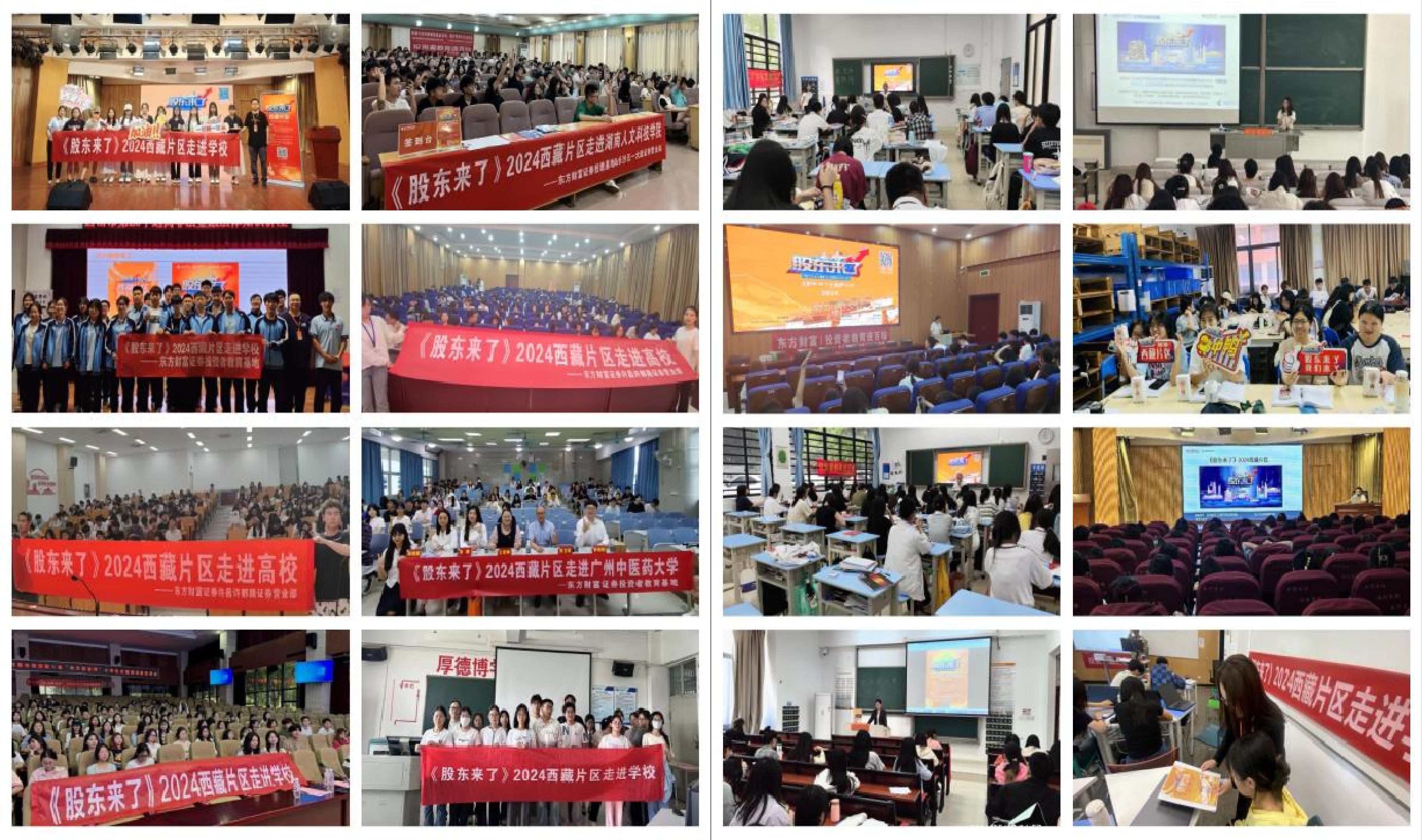 公司在持续落实竞赛宣传推广工作的同时积极践行校园投教初心,组织全国各地分支机构围绕本届《股东来了》活动主题,不断创新推进投资者教育纳入国民教育体系模式,通过户外宣传、知识讲座、互动交流等形式走进了西藏大学、电子科技大学、华中师范大学、河海大学、西南民族大学、青岛大学、河北大学、安徽财经大学等全国各地学校,积极号召广大学生群体参与《股东来了》(2024)活动,学习资本市场知识,加强自身金融知识储备和风险防范意识,促进学生们全面发展。