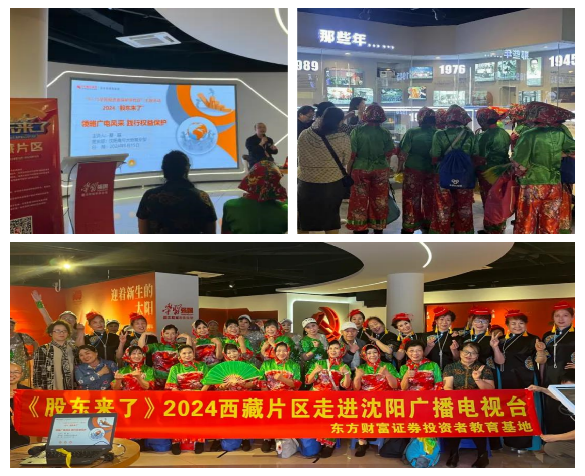 为落实竞赛宣传工作,5月15日当天,东方财富证券投资者教育基地以《股东来了》(2024)活动为契机,联合东方财富证券沈阳青年大街证券营业部走进沈阳广播电视台,举办了“《股东来了》——领略广电风采,践行权益保护”主题投资者教育活动。本次活动采用现场宣讲与线上同步直播的方式开展,沈阳广播电视台生活广播频道《记者面对面》栏目组邀请了当地民间团体54人现场参与,线上参与30人。