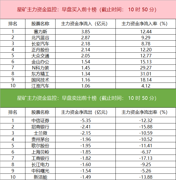 主力资金监控:赛力斯净买入超3亿元