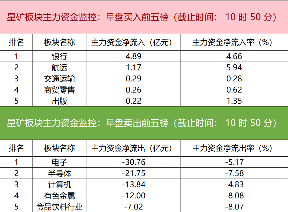 主力资金监控:工商银行、农业银行等主力资金净流入居前