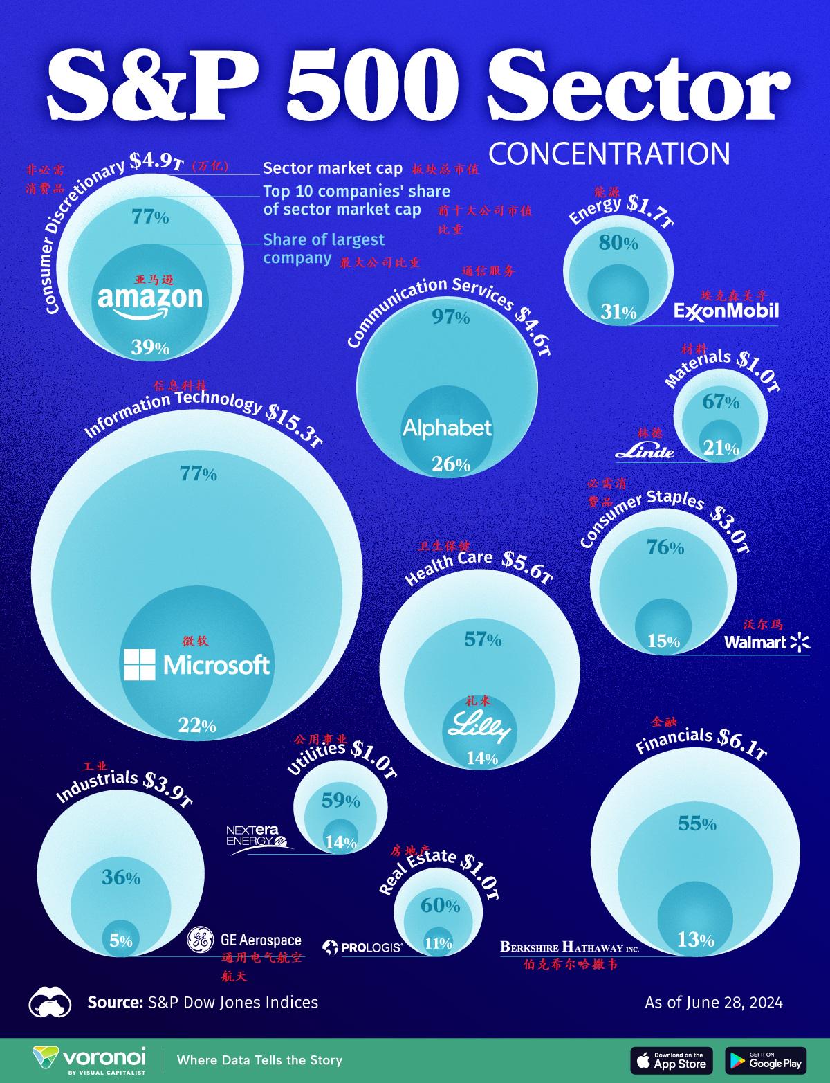 一图看懂:标普500指数11大板块各自最大的权重股都是谁?