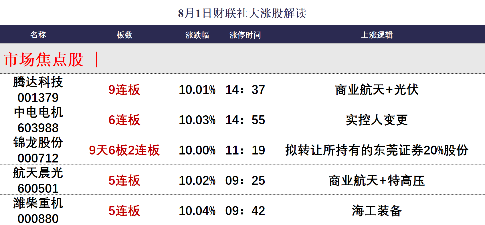 8月1日涨停分析