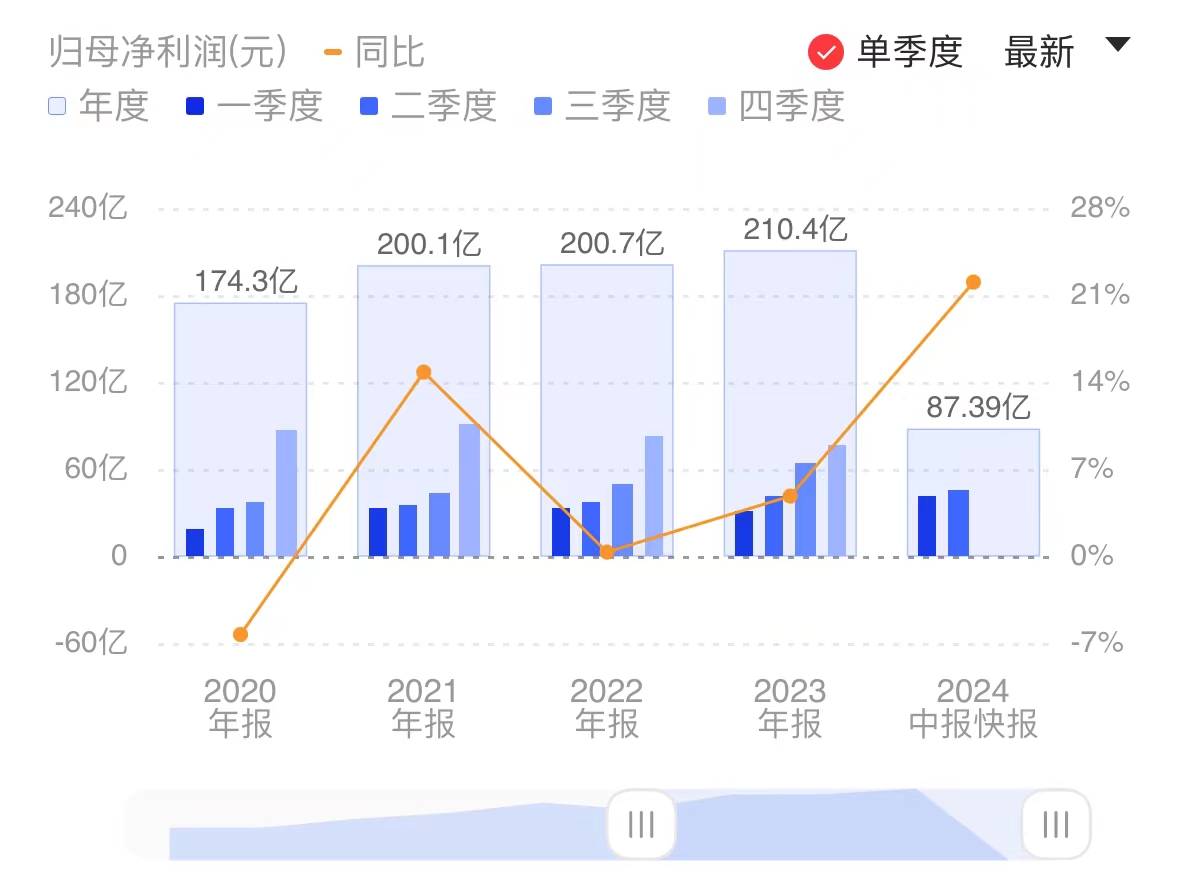 财联社8月4日电,工业富联发布2024年半年度业绩快报,实现营业收入2,660.9亿元,同比增长28.69%,归属于上市公司股东的净利润87.4亿元,同比增长22.04%。受益于AI服务器强劲需求增长,公司凭借覆盖AI全产业链垂直整合能力,云计算业务营收增长强劲,其中AI服务器产品营收倍比增长,呈现加速增长趋势,云服务商营收占比持续提升,带动公司营收及获利能力增长。公司紧抓数字经济与AI发展机遇,通过先进技术研发及产能布局,使得云计算、网络通讯等板块在业内取得显著领先优势。小财注:Q1净利41.85亿元,据此计算,Q2净利45.55亿元,环比增长8.8%。