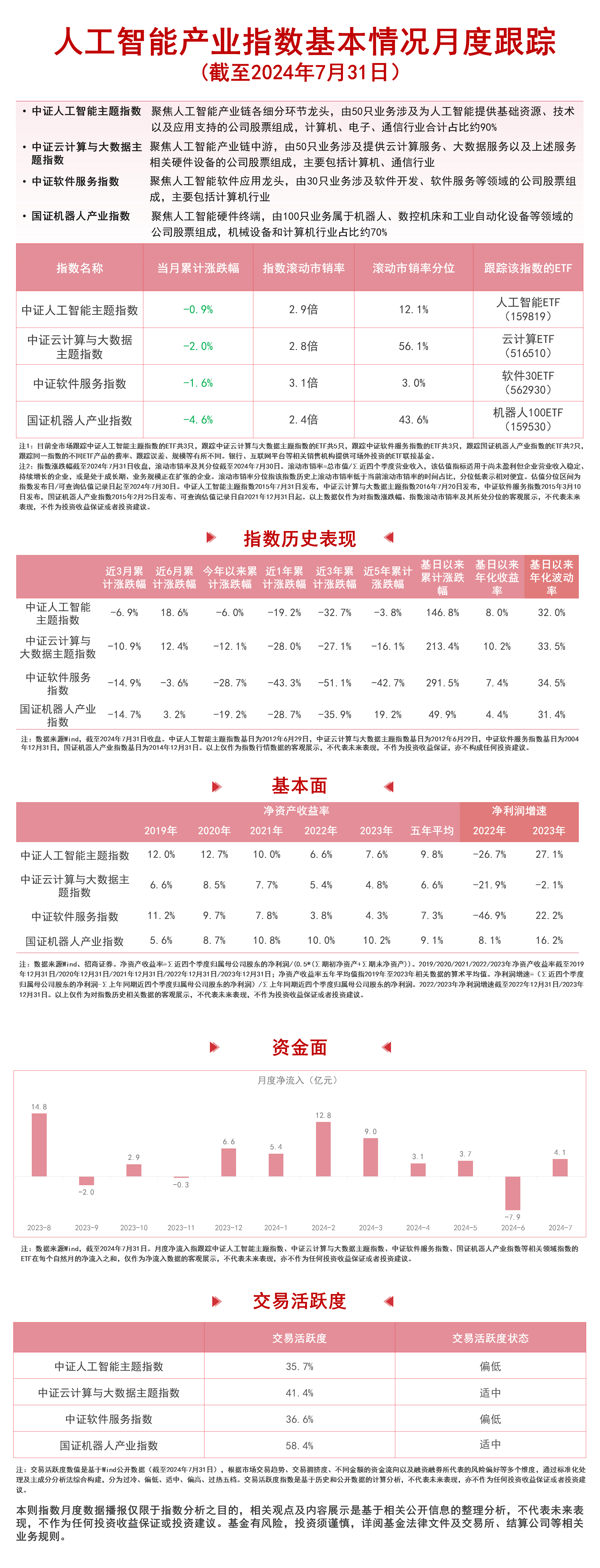 财联社8月5日电,7月,中证人工智能主题指数下跌0.9%,中证软件服务指数下跌1.6%,中证云计算与大数据主题指数下跌2.0%,国证机器人产业指数下跌4.6%。