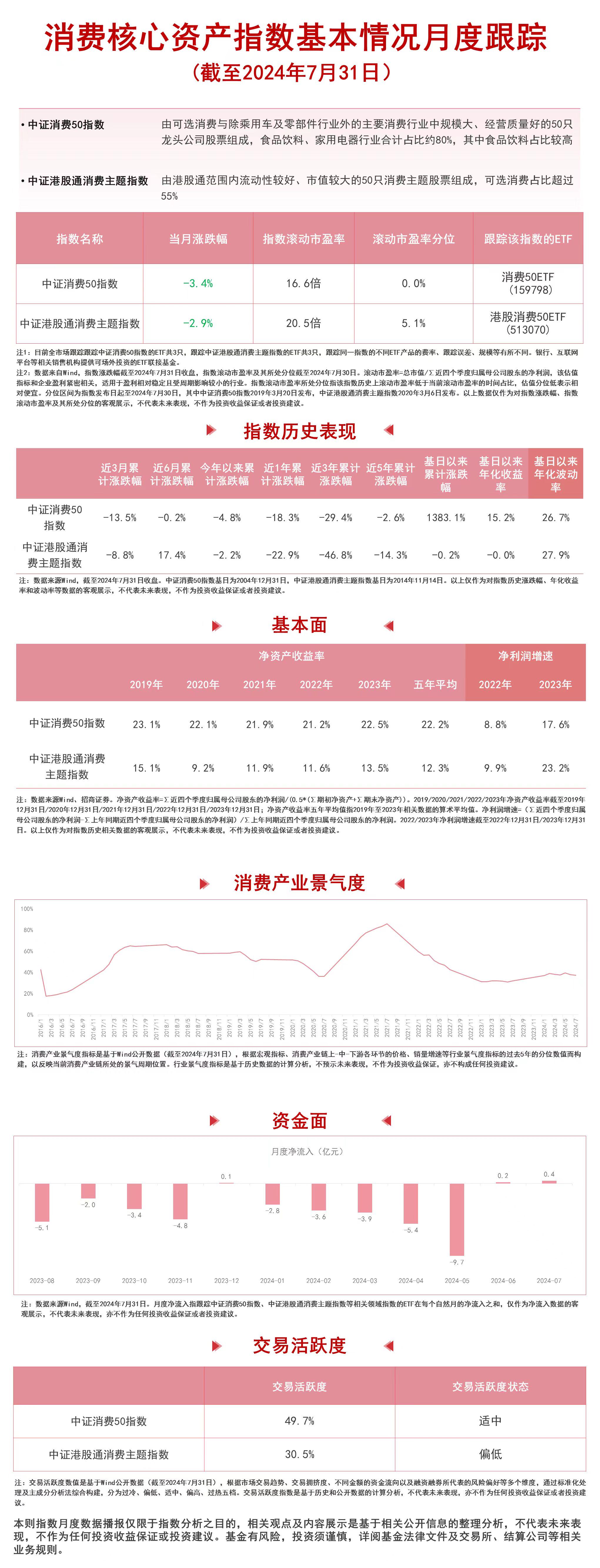 财联社8月6日电,7月,中证港股通消费主题指数下跌2.9%,中证消费50指数下跌3.4%。