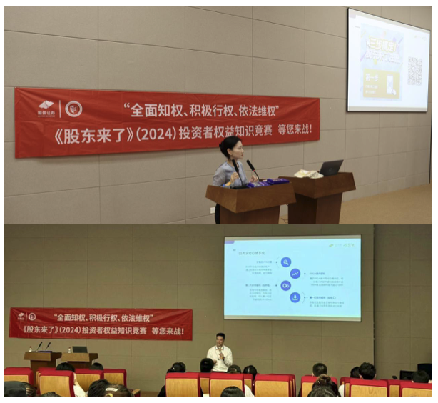为进一步提升《股东来了》活动宣传效果,国信证券围绕《股东来了》赛事宣传和投资者权益保护为主题,开展“投资者教育进百校”系列活动,通过普及金融知识和倡导理性投资文化,帮助在校学生了解资本市场,提升大学生金融素养和权益维护意识。