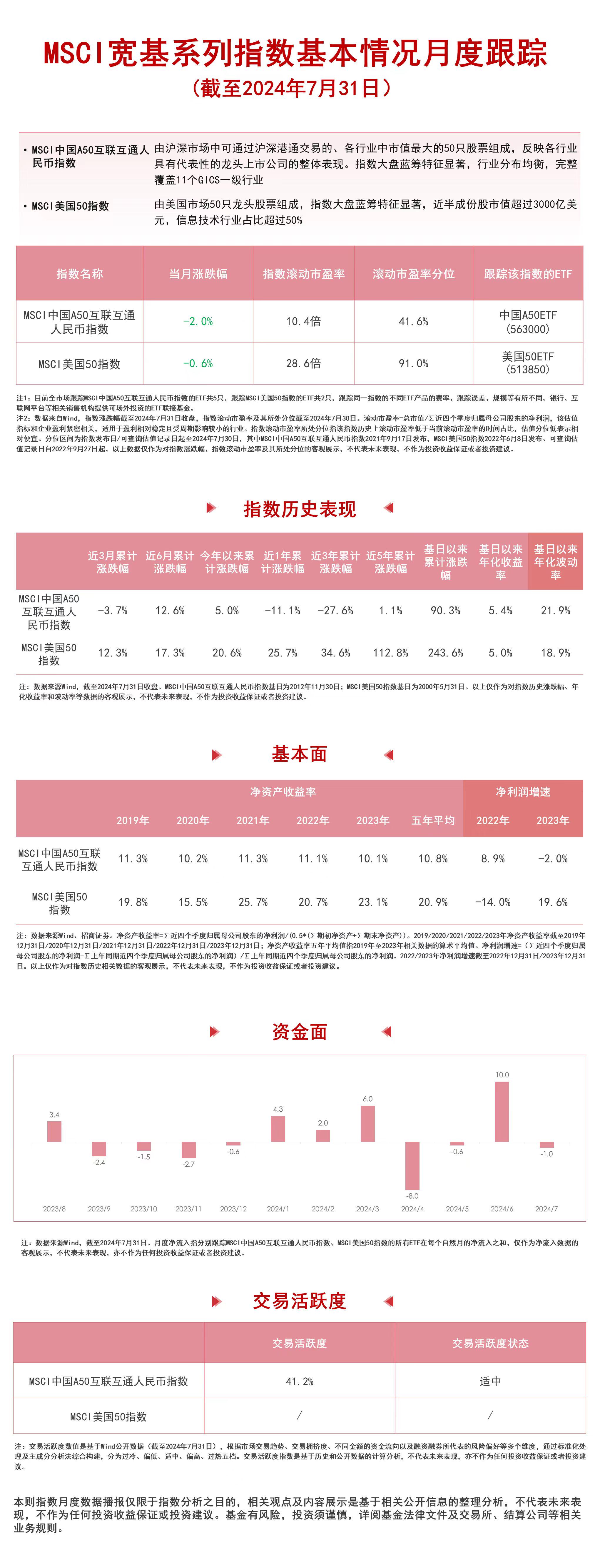 财联社8月7日电,7月,MSCI中国A50互联互通人民币指数下跌2.0%,MSCI美国50指数下跌0.6%。