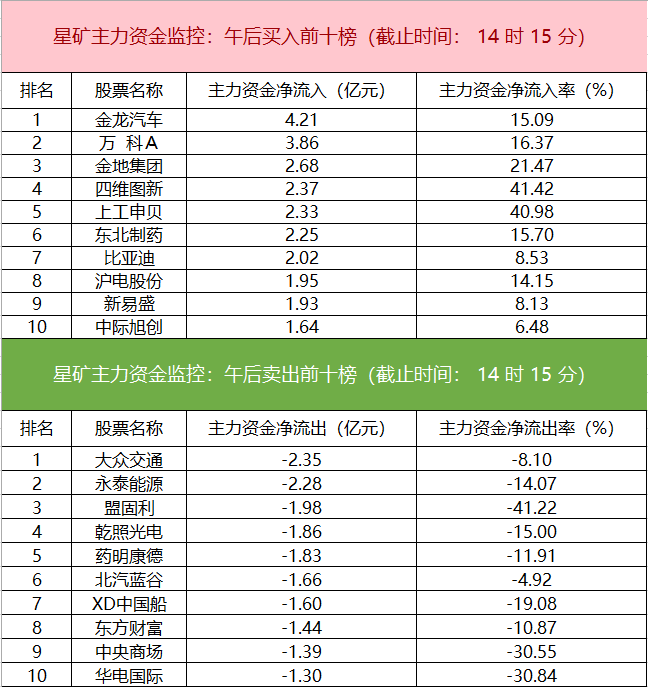 主力资金监控:金龙汽车净买入超4亿