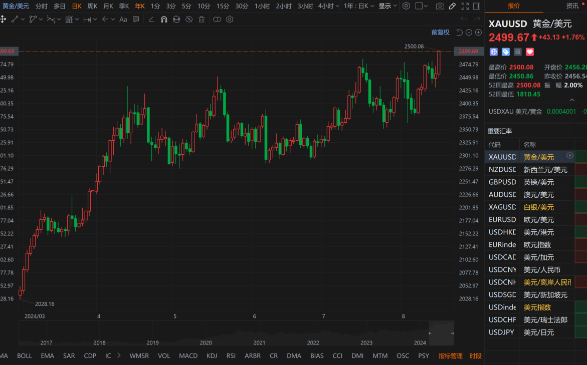 美联储降息预期推动黄金升至2500美元 刷新纪录新高