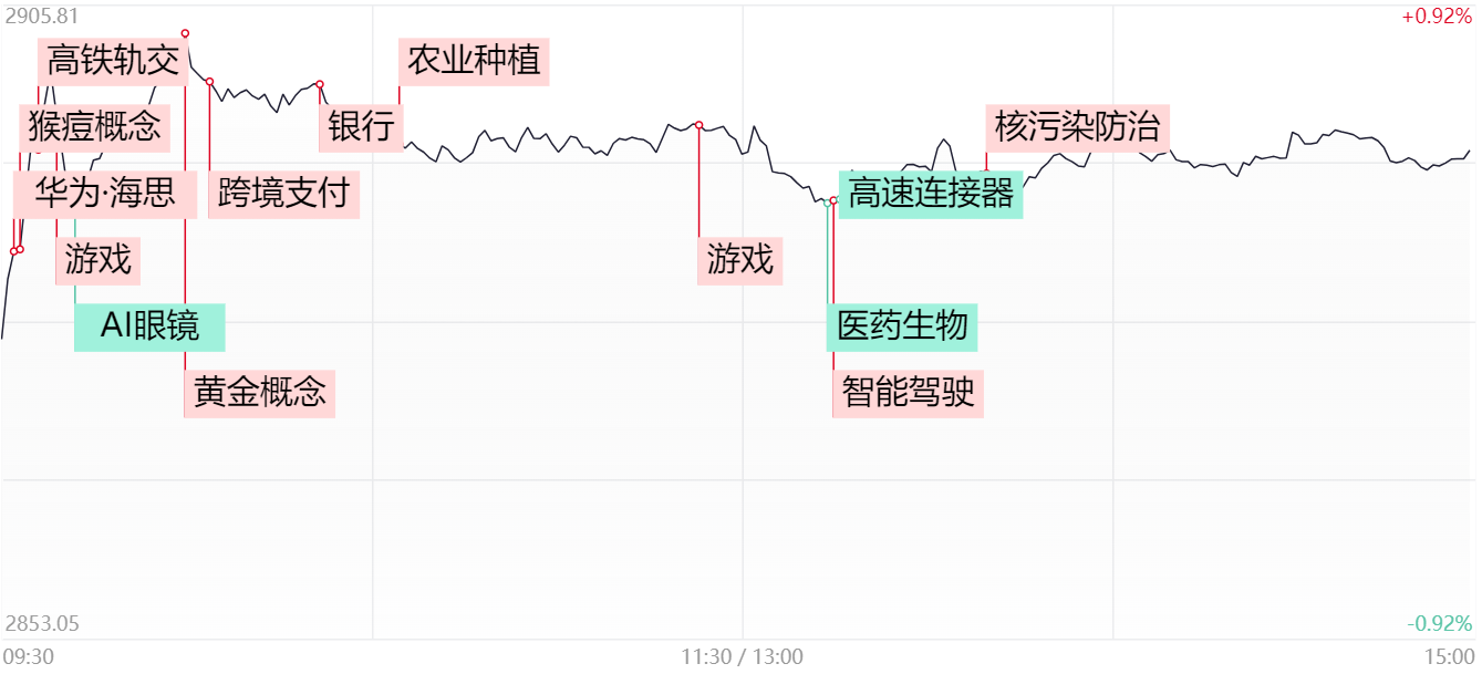 财联社8月20日电,市场全天冲高回落,三大指数涨跌不一。总体上个股跌多涨少,全市场超3100只个股下跌。沪深两市成交额5706亿,较上周五缩量205亿。1)跨境支付概念早盘异军突起并全天表现强势,四方精创、高伟达、华峰超纤、京北方等多股报收涨停。与此前大基建、猴痘概念等类似,板块内超跌20CM方向的批量涨停容易在短时间迅速高潮。2)华为全联接大会将于1个月后举行,市场继续围绕华为海思概念展开博弈,世纪鼎利受到20CM高位股整体降温拖累,出现巨量炸板行情。由于相关经销商的业绩相对较为稳定,因此深圳华强、力源信息、好上好三只连板股均为华为海思概念股中的经销商分支。3)AI眼镜概念股领跌,此前走出4连板的博士眼镜在内的板块内多只高位人气股均跌超10%,亚世光电则止步4连板,盘初短暂修复后早早封死跌停。在多个超跌方向分流资金作用下,短期涨幅过大的AI眼镜概念降温也在情理之中。4)银行板块延续强势,“工农中建”四大国有行股价齐创历史新高,交通银行、浦发银行再创年内新高。与银行板块同属红利股范畴的高速公路板块也表现不俗,山东高速、宁沪高速、深高速均创历史新高。