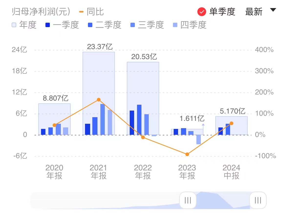 财联社8月20日电,兆易创新发布2024年半年报,上半年实现营业收入36.09亿元,同比增长21.69%;归属于上市公司股东的净利润5.17亿元,同比增长53.88%。公司表示,营业收入的增长主要得益于消费、网通市场的需求回暖,带动了公司存储芯片的产品销量和营收增长。同时,公司多条产品线的竞争力不断增强,也促进了产品销量和营收的增长。小财注:Q1净利2.05亿元,据此计算,Q2净利3.12亿元,环比增长52%。