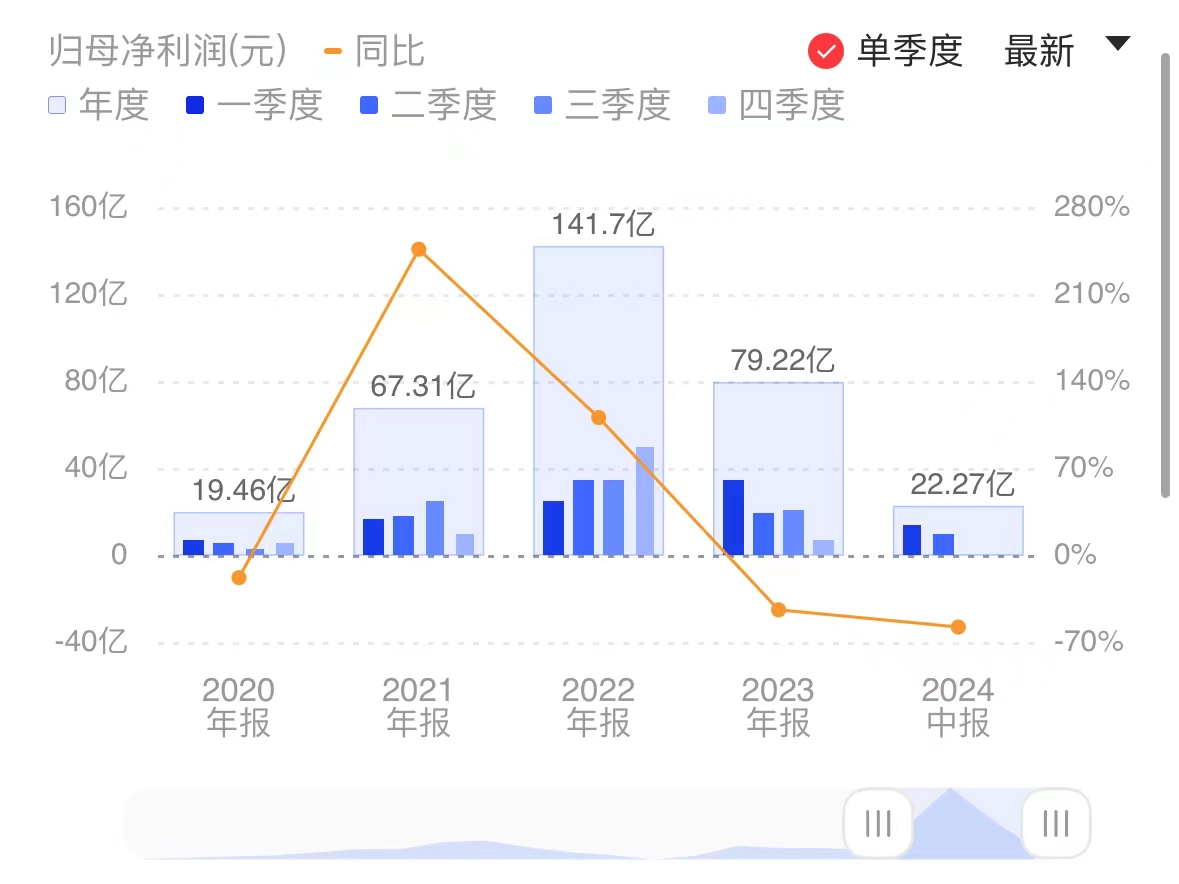 财联社8月22日电,潞安环能发布2024年半年度报告,报告期内,公司实现营业收入176.54亿元,同比下降19.33%;归属于上市公司股东的净利润22.27亿元,同比减少57.96%。公司主营业务包括原煤开采、煤炭洗选、煤焦冶炼等。煤炭产品以及焦炭产品主要用于发电、动力、炼焦和钢铁行业。小财注:Q1净利12.88亿元,据此计算,Q2净利9.39亿元,环比下降27%。