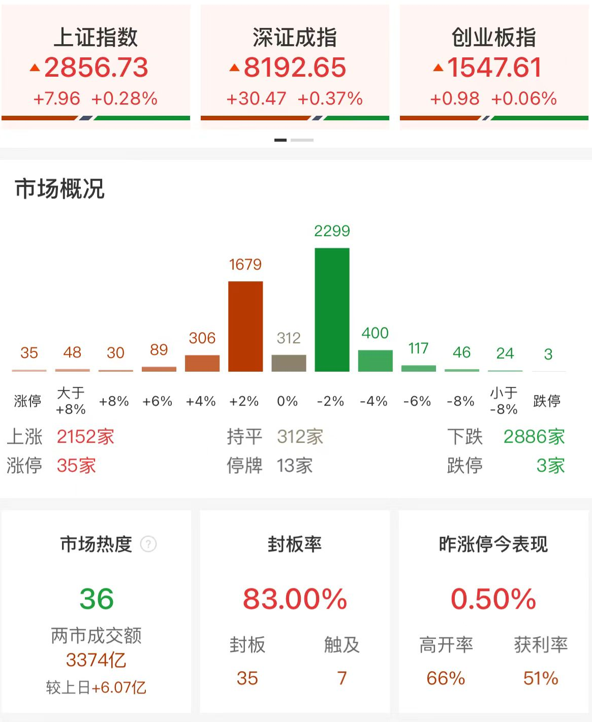 财联社8月23日电,市场早盘震荡反弹,三大指数均小幅上涨。盘面上,华为概念股全线爆发,海思、鸿蒙等方向涨幅居前,优博讯、世纪鼎利、深圳华强、拓维信息等10余股涨停。大金融股震荡走高,浙商证券涨超5%,中国平安涨超4%。跨境支付概念股再度活跃,东方通涨超10%,京北方涨停。下跌方面,固态电池概念股集体调整,盟固利等多股跌超5%。总体上个股跌多涨少,全市场超2800只个下跌。沪深两市半日成交额3374亿,与上个交易日放量6亿。板块方面,华为海思、华为鸿蒙、星闪概念、保险等板块涨幅居前,固态电池、贵金属、猴痘、乳业等板块跌幅居前。截至收盘,沪指涨0.28%,深成指涨0.37%,创业板指涨0.06%。