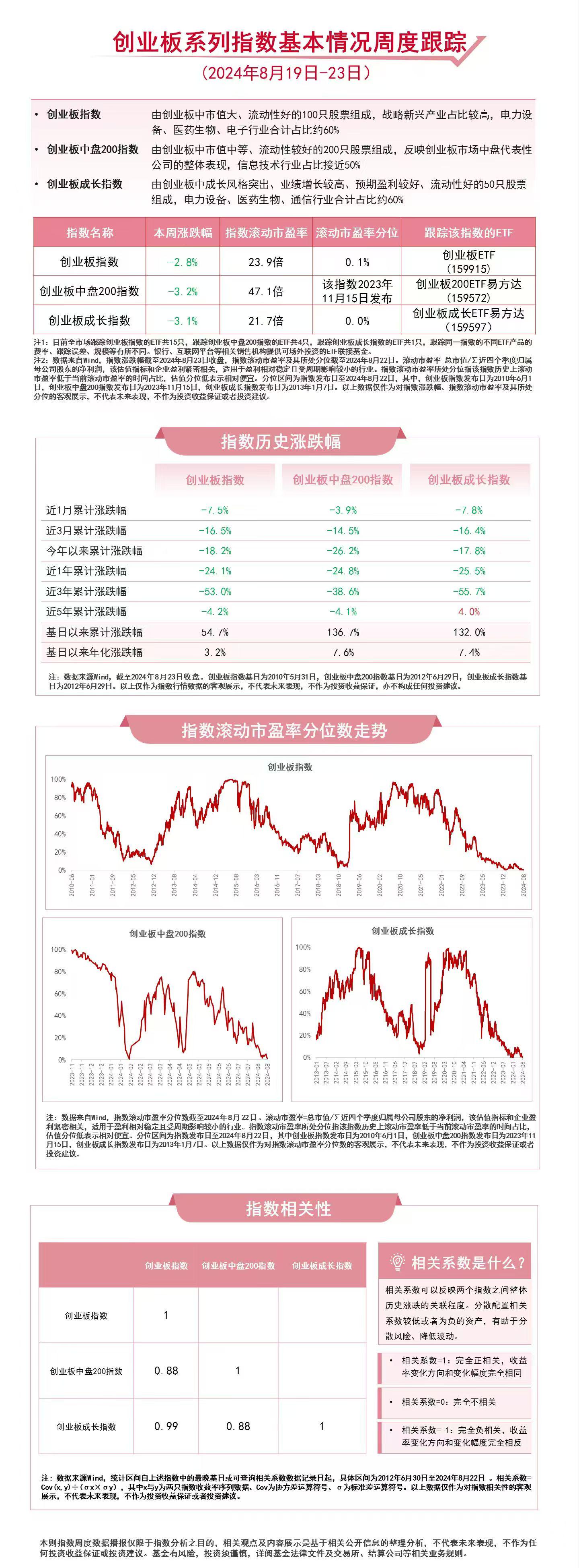 本周创业板指数下跌2.8%,创业板成长指数下跌3.1%,创业板中盘200指数下跌3.2%。目前,创业板指数和创业板成长指数的滚动市盈率不到25倍,估值均位于指数发布以来1%分位以下。