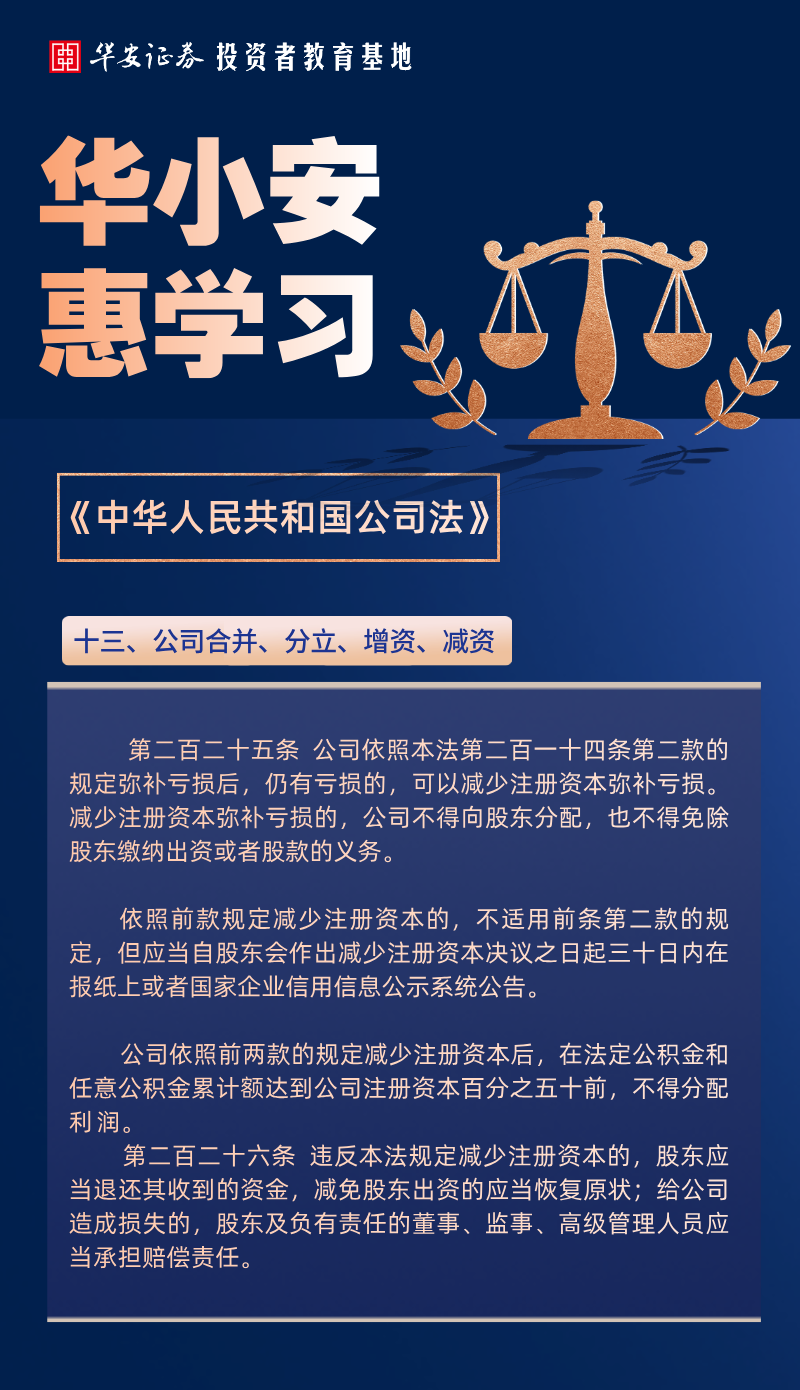 华小安惠学习 | 新《公司法》:减少注册资本弥补亏损的,公司不得向股东分配,也不得免除股东缴纳出资或者股款的义务