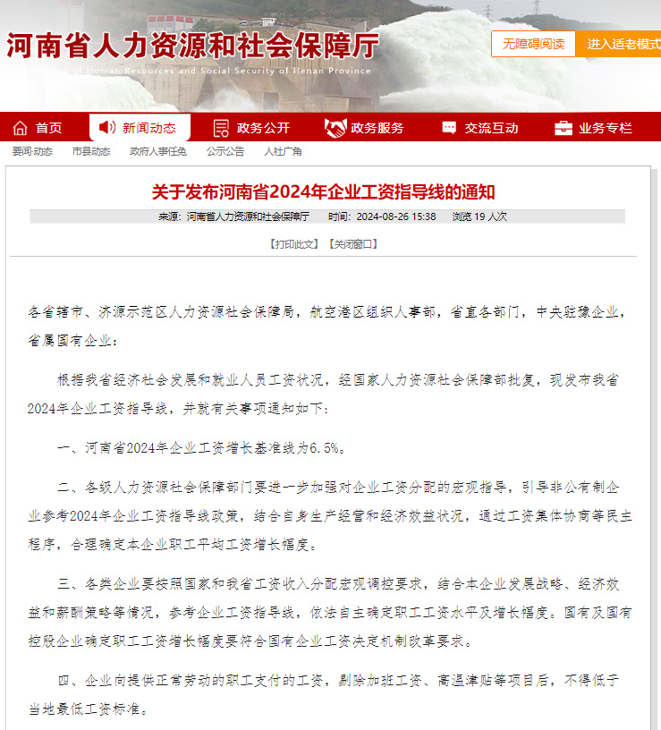 河南省人社厅:2024年企业工资增长基准线为6.5%
