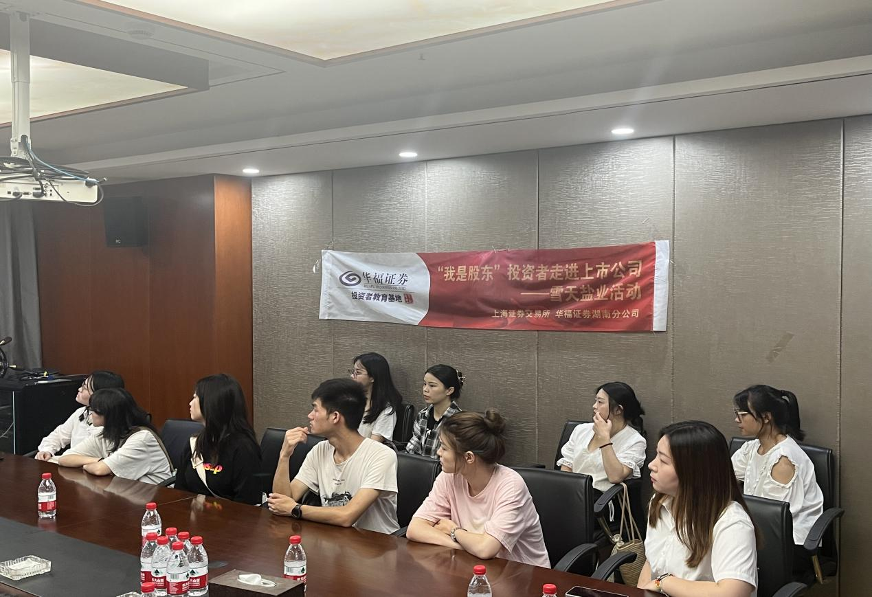 为提升投资者专业知识水平和风险防范意识,搭建投资者与上市公司之间的沟通桥梁,切实落实保护投资者合法权益的主体责任,8月22日,华福证券湖南分公司携手投资者开展“我是股东”走进沪市上市公司——雪天盐业(600929)活动。