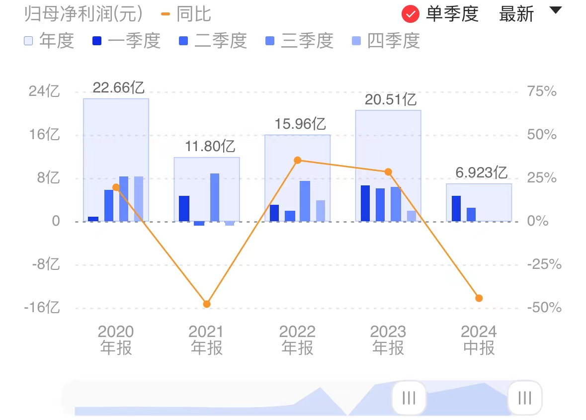 财联社8月29日电,领益智造公告,公司2024年上半年实现营业收入191.2亿元,同比增长25.06%;归属于上市公司股东的净利润为6.92亿元,同比下降44.53%。小财注:Q1净利4.61亿元,据此计算,Q2净利2.31亿元,环比下降50%。