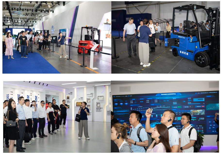 在数字化展示区域,讲解员对于企业发展历程、系列产品等进一步详细说明,如今,杭叉集团逐步实施产品新能源战略,在未来力争将全系列产品切换为锂电、氢燃料电池等新能源产品,实现产品战略转型升级和高质量发展目标。通过近距离的展示,让大家能够观察新能源产品,并了解到产品的各类性能,体验公司的智能化服务化转型。