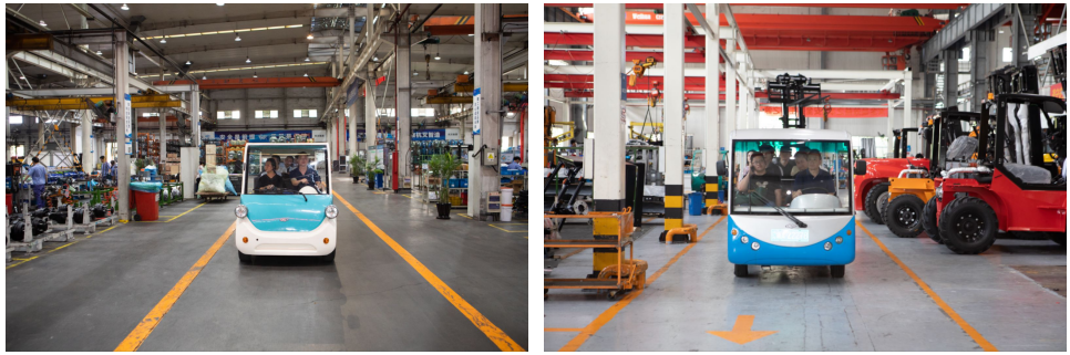 活动起始,投资者们坐上浏览车,穿梭在各个生产车间,在讲解员的讲解下,近距离直观了解到叉车的生产制造工艺,流水线智能化的制作流程。