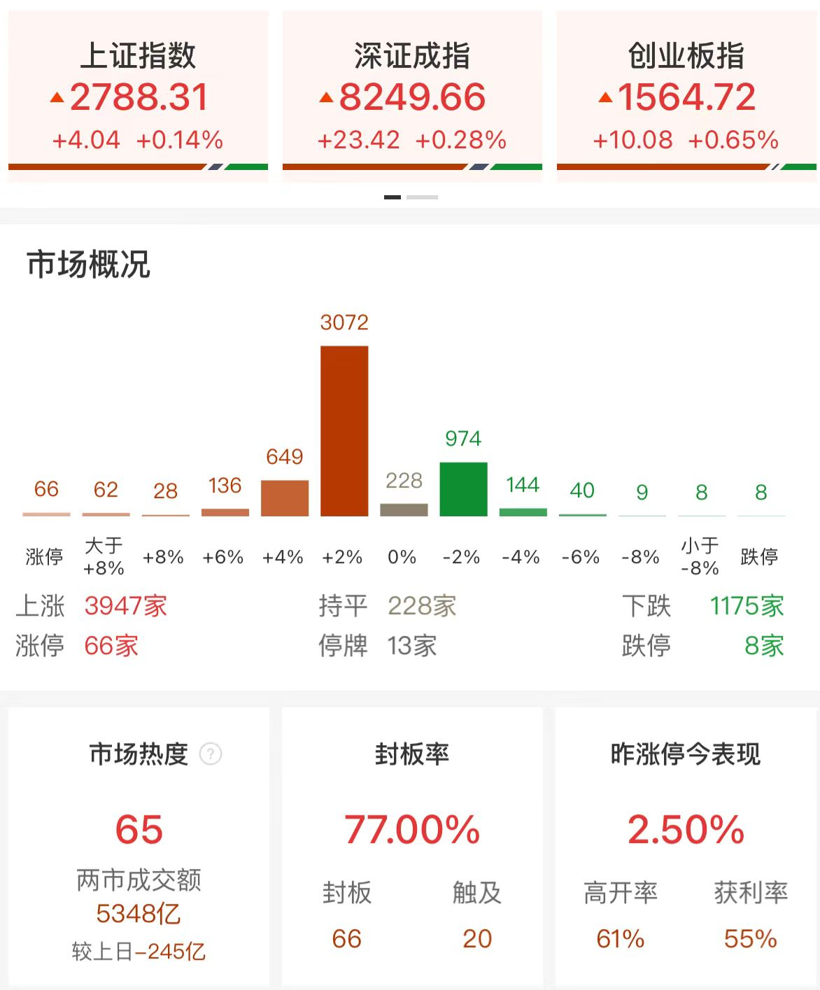 财联社9月5日电,市场全天震荡反弹,创业板指领涨。盘面上,移动支付概念股集体大涨,飞天诚信、神思电子、创识科技、恒宝股份等近10股涨停。医药商业概念股持续活跃,老百姓、人民同泰、漱玉平民涨停。电商概念股异动拉升,星徽股份、跨境通涨停。网约车概念股展开反弹,大众交通、锦江在线涨停。地产股表现活跃,世联行、京能置业涨停。下跌方面,电池概念股展开调整,鹏辉能源跌超10%。总体上个股涨多跌少,全市场近4000只个股上涨。沪深两市今日成交额5348亿,较上个交易日缩量246亿。板块方面,电商、移动支付、医药商业、网约车等板块涨幅居前,电池、煤炭、染料、折叠屏等板块跌幅居前。截至收盘,沪指涨0.14%,深成指涨0.28%,创业板指涨0.65%。