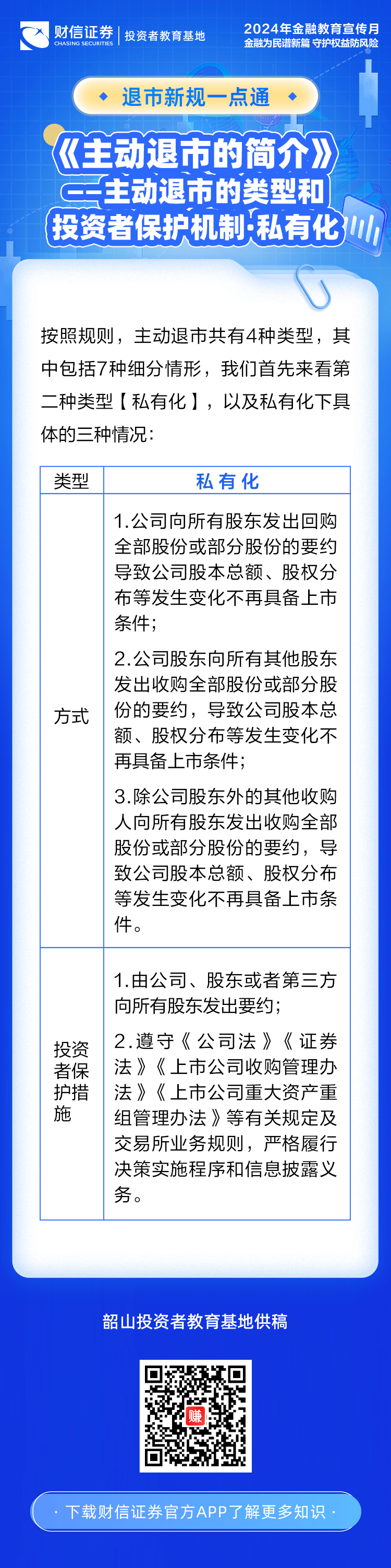 【2024年金融教育宣传月】退市新规一点通丨《主动退市的简介》——主动退市的类型和投资者保护机制·私有化