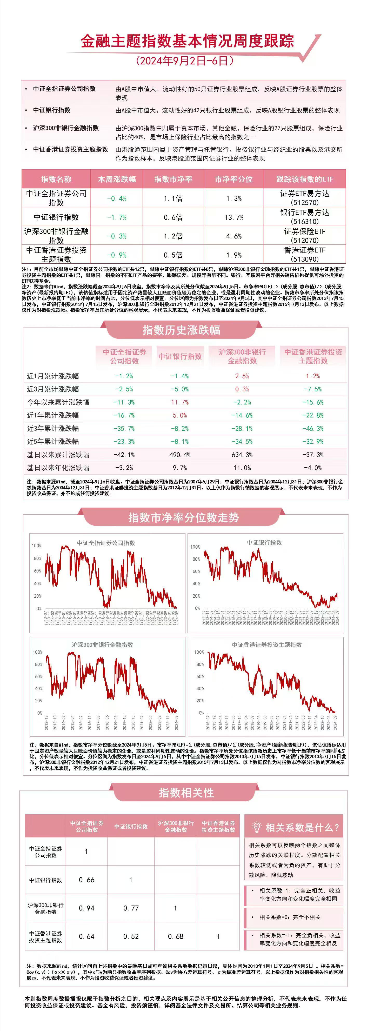 财联社9月7日电,本周沪深300非银行金融指数下跌0.3%,中证全指证券公司指数下跌0.4%,香港证券指数下跌0.9%,中证银行指数下跌1.7%。