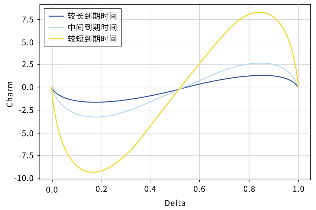表2 看涨香草期权随到期时间变化期权Charm分布