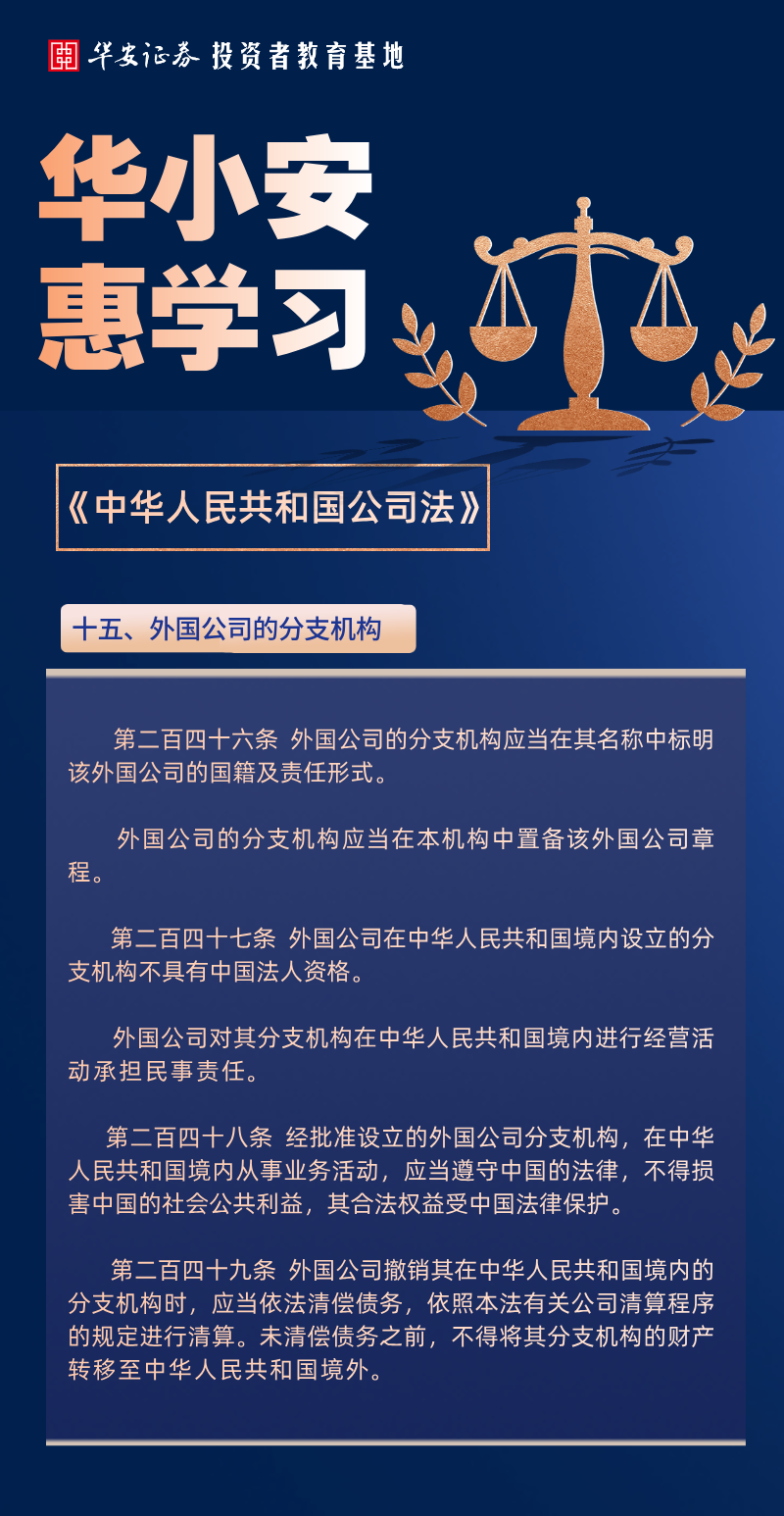 【金融教育宣传月】华小安惠学习 | 新《公司法》:外国公司在中华人民共和国境内设立的分支机构不具有中国法人资格