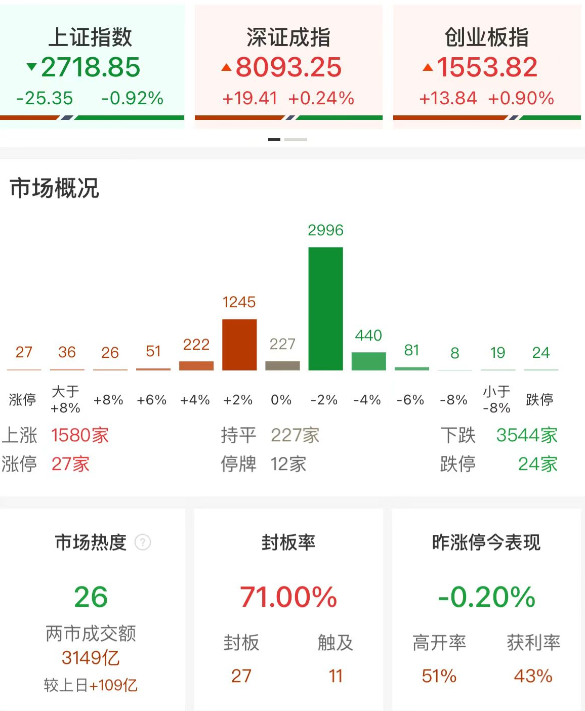 财联社9月11日电,市场早盘震荡分化,创业板指反弹,沪指再创阶段新低,长江电力等红利股集体下挫。盘面上,新能源赛道股集体反弹,其中锂矿股大涨,永杉锂业、威领股份、天齐锂业、金圆股份涨停;固态电池概念股再度活跃,联创股份、德福科技涨停;光伏概念股展开反弹,海源复材、国晟科技涨停。充电桩概念股震荡走高,金冠股份、奥特迅涨停。下跌方面,红利股展开调整,长江电力跌超3%,中国海油跌超5%;高位股继续大跌,科森科技、大众交通等跌停。总体上个股跌多涨少,全市场近3500只个下跌。沪深两市半日成交额3149亿,与上个交易日放量109亿。板块方面,锂矿、电池、光伏、虚拟电厂等板块涨幅居前,电商、高速公路、教育、煤炭等板块跌幅居前。截至收盘,沪指跌0.92%,深成指涨0.24%,创业板指涨0.9%。