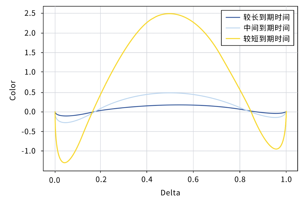 而Color和Zomma具有相似的性质。对于看涨香草期权,剩余到期时间减少或波动率下降会使得Color值、Zomma值增加,而Color和Zomma的增加又会导致期权对于时间推移、波动率变动更加敏感。