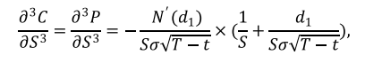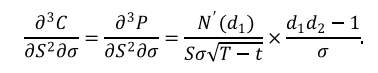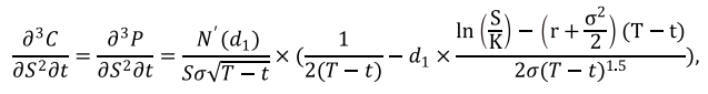 Speed,Color和Zomma分别用来描述Gamma对于标的价格、时间推移和波动率变化的敏感度。香草期权的Speed公式为: