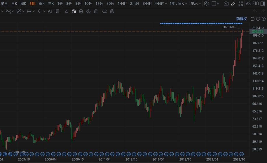 财联社9月11日电,IBM股价上涨1.3%,达到每股207.9美元的纪录高点,总市值接近2000亿美元。