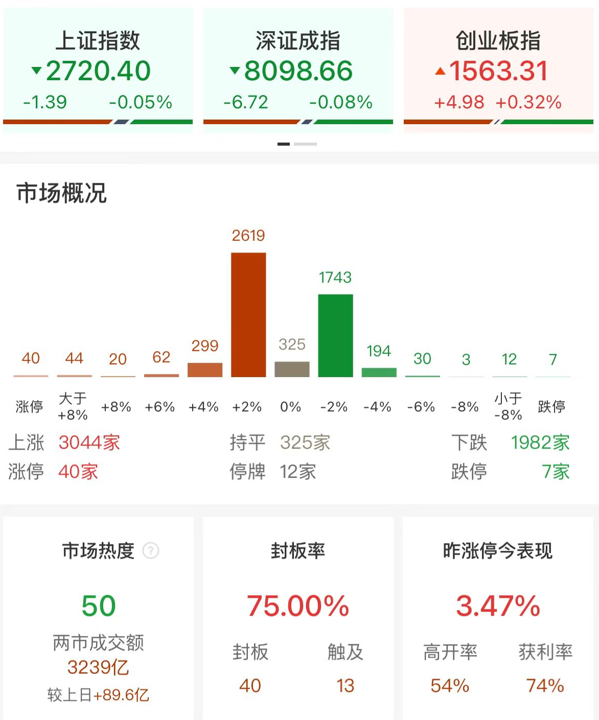 财联社9月12日电,市场早盘冲高回落,三大指数涨跌不一。盘面上,华为概念股再度大涨,久其软件、常山北明、博彦科技、南天信息等多股涨停。海南自贸区概念股集体走强,康芝药业、海南瑞泽、海南海药、海南发展涨停。光伏概念股一度冲高,苏州固锝、海源复材涨停,中来股份涨超10%。国企改革概念股局部活跃,空港股份、澳柯玛、莫高股份等涨停。下跌方面,白酒股展开调整,贵州茅台创2022年11月以来新低。总体上个股涨多跌少,全市场超3000只个上涨。沪深两市半日成交额3289亿,与上个交易日放量90亿。板块方面,海南自贸区、华为鲲鹏、BC电池、软件开发等板块涨幅居前,保险、白酒、医药商业、消费电子等板块跌幅居前。截至收盘,沪指跌0.05%,深成指跌0.08%,创业板指涨0.32%。