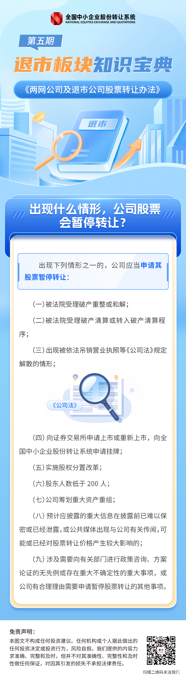 【金融教育宣传月】退市板块知识宝典 | 第五期:出现什么情形,退市公司股票会暂停转让?