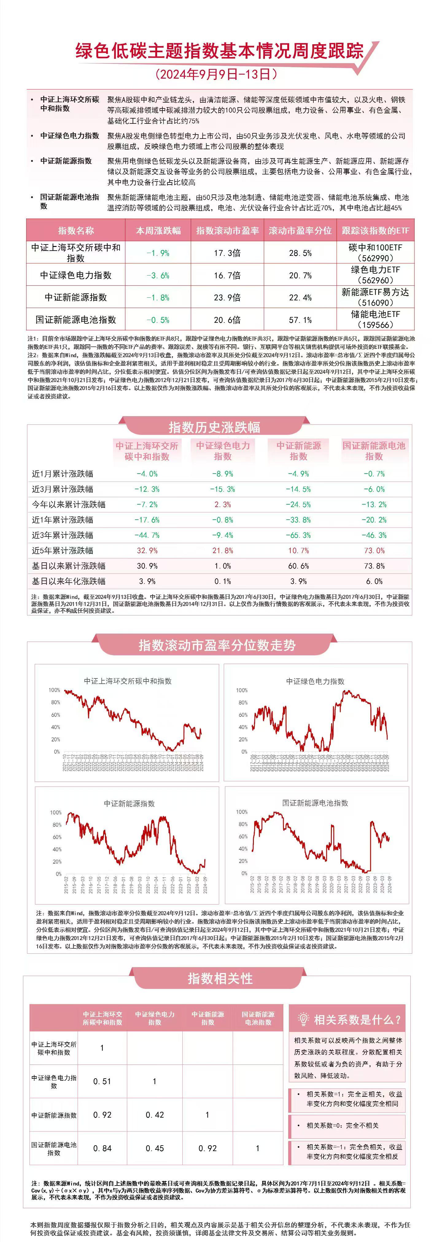 本周国证新能源电池指数下跌0.5%,中证新能源指数下跌1.8%,中证上海环交所碳中和指数下跌1.9%,中证绿色电力指数下跌3.6%。