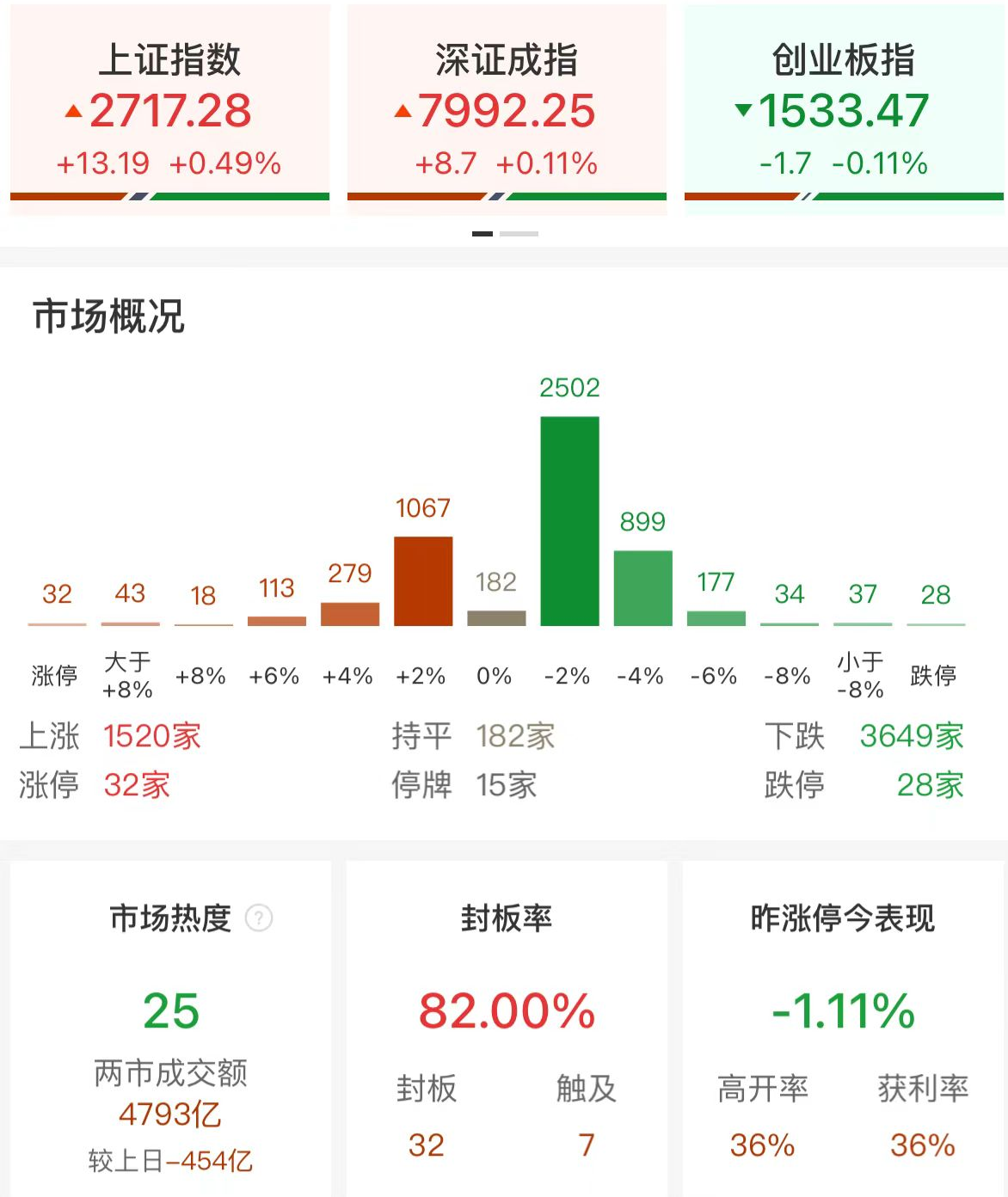 财联社9月18日电,市场全天探底回升,沪指盘中一度跌破2700点。盘面上,光刻机概念股集体大涨,同飞股份、波长光电、海立股份、张江高科等涨停。地产股午后拉升,我爱我家、中交地产、电子城涨停。多元金融概念股盘中异动,弘业期货、九鼎投资涨停。国企改革概念股持续活跃,保变电气盘中一度上演“地天板”,瑞泰科技、宝塔实业、龙高股份、大连热电等10余股涨停。下跌方面,消费电子概念股展开调整,东山精密等多股跌超5%。总体上个股跌多涨少,全市场超3600只个股下跌。沪深两市今日成交额4793亿,较上个交易日缩量454亿,创年内第三地量。板块方面,光刻机、多元金融、煤炭、房地产等板块涨幅居前,消费电子、电商、ST板块、电子烟等板块跌幅居前。截至收盘,沪指涨0.49%,深成指涨0.11%,创业板指跌0.11%。