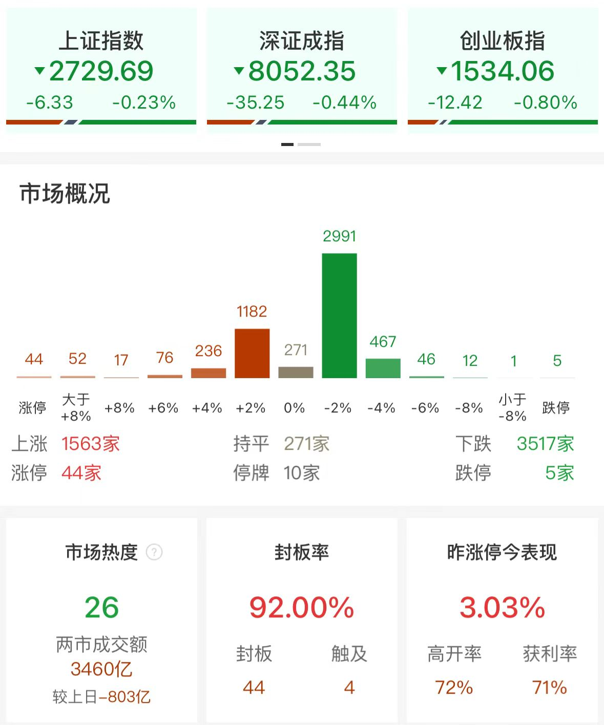 财联社9月20日电,市场早盘震荡调整,创业板指领跌。盘面上,信创概念股集体走强,通达海、常山北明、南天信息、启明信息等10余股涨停。地产股震荡走高,渝开发、电子城、大龙地产涨停。卫星导航概念股盘中拉升,烽火电子、日海智能、海能达涨停。国企改革概念股持续活跃,保变电气、东方通信、大唐电信等10余股涨停。下跌方面,创新药概念股展开调整,海南海药等多股跌超5%。总体上个股跌多涨少,全市场超3500只个股下跌。沪深两市半日成交额3460亿,与上个交易日缩量803亿。板块方面,智慧政务、通信服务、贵金属、房地产等板块涨幅居前,中船系、光伏设备、创新药、保险等板块跌幅居前。截至收盘,沪指跌0.23%,深成指跌0.44%,创业板指跌0.8%。