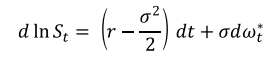 这样就能得到风险中性测度下标的资产价格St服从的随机过程: