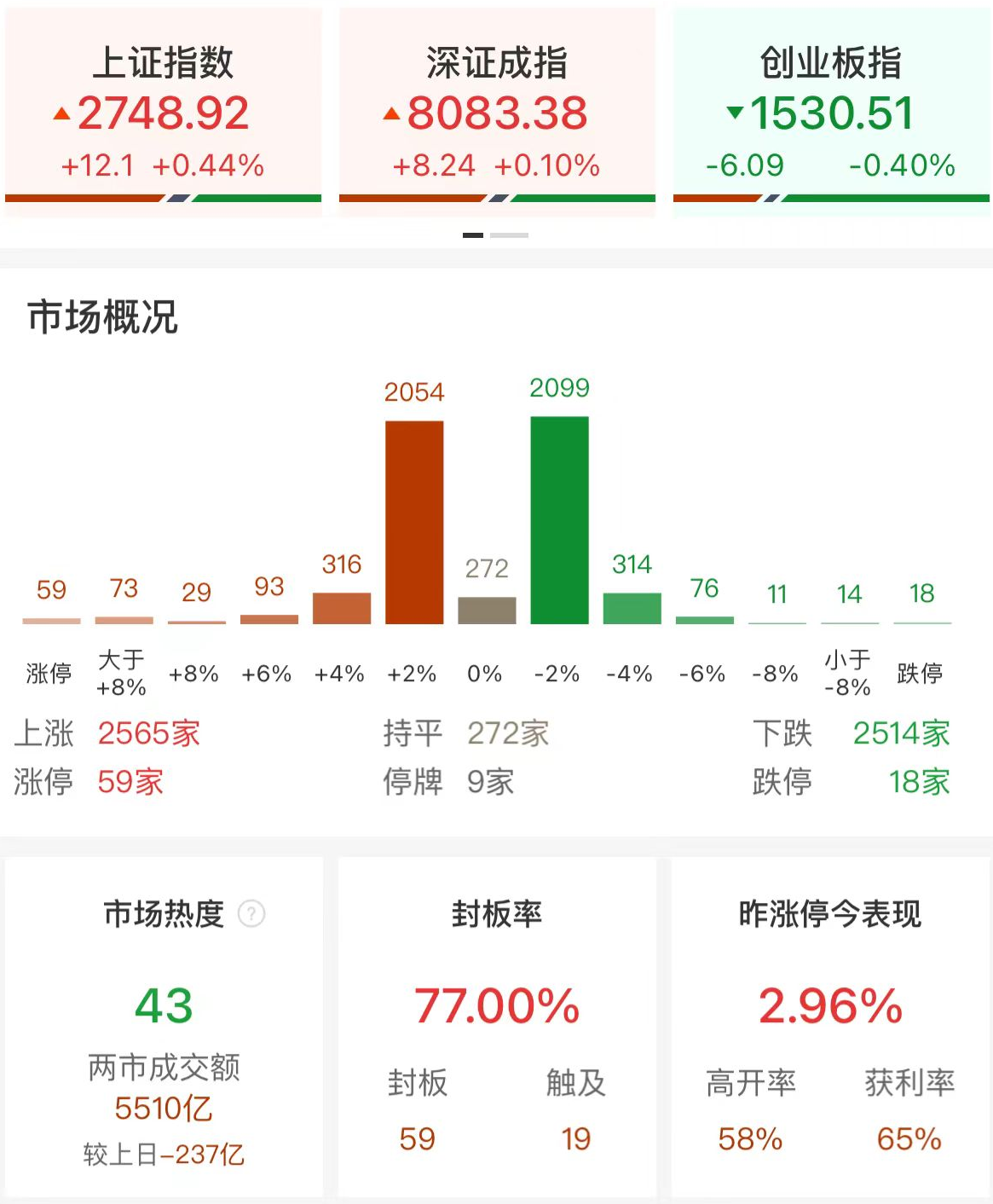 财联社9月23日电,市场全天冲高回落,沪指录得四连阳,创业板指收跌。盘面上,华为概念股集体走强,常山北明、国华网安、法本信息、福日电子等10余股涨停。智能驾驶概念股盘中拉升,光庭信息、四维图新、索菱股份、电科网安等10余股涨停。国企改革概念股反复活跃,保变电气、湖南天雁、大唐电信、亿利达等20余股涨停。银行股震荡反弹,华夏银行、宁波银行双双涨超3%。下跌方面,光伏概念股陷入调整,德业股份跌停。总体上个股上涨和下跌家数基本相当。沪深两市今日成交额5510亿,较上个交易日缩量237亿。板块方面,银行、华为概念、车联网、CRO等板块涨幅居前,风电、光伏、眼科医疗、猪肉等板块跌幅居前。截至收盘,沪指涨0.44%,深成指涨0.1%,创业板指跌0.4%。