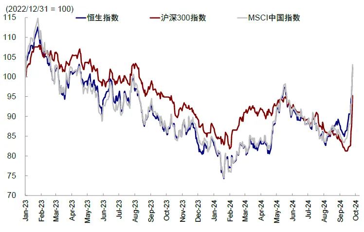► 另一方面,着力稳定资产价格与投资回报预期。降息降准政策整体还是延续以前宽松思路,幅度也基本在预期之内,更超预期的增量变化在于稳定资产价格和投资回报预期,体现在政策创新与目标表述:1)央行创设两个新的结构性货币政策工具稳定股市价格,一是证券基金保险公司互换便利工具,鼓励非银金融机构股市投资加杠杆,首期操作规模是5,000亿元,后续规模可能追加5,000-10,000亿元;二是股票回购增持专项再贷款,并且利率仅为2.25%,此举相当于央行为股市注入增量资金,首期额度是3,000亿元,后续规模同样可追加至3,000-6,000亿元。2)目标性表述明确稳定地产价格,政治局会议首次提出明确目标性表述“促进房地产市场止跌回稳”,大幅超出市场预期,地产需求端与供给端的接续政策或加速发力;