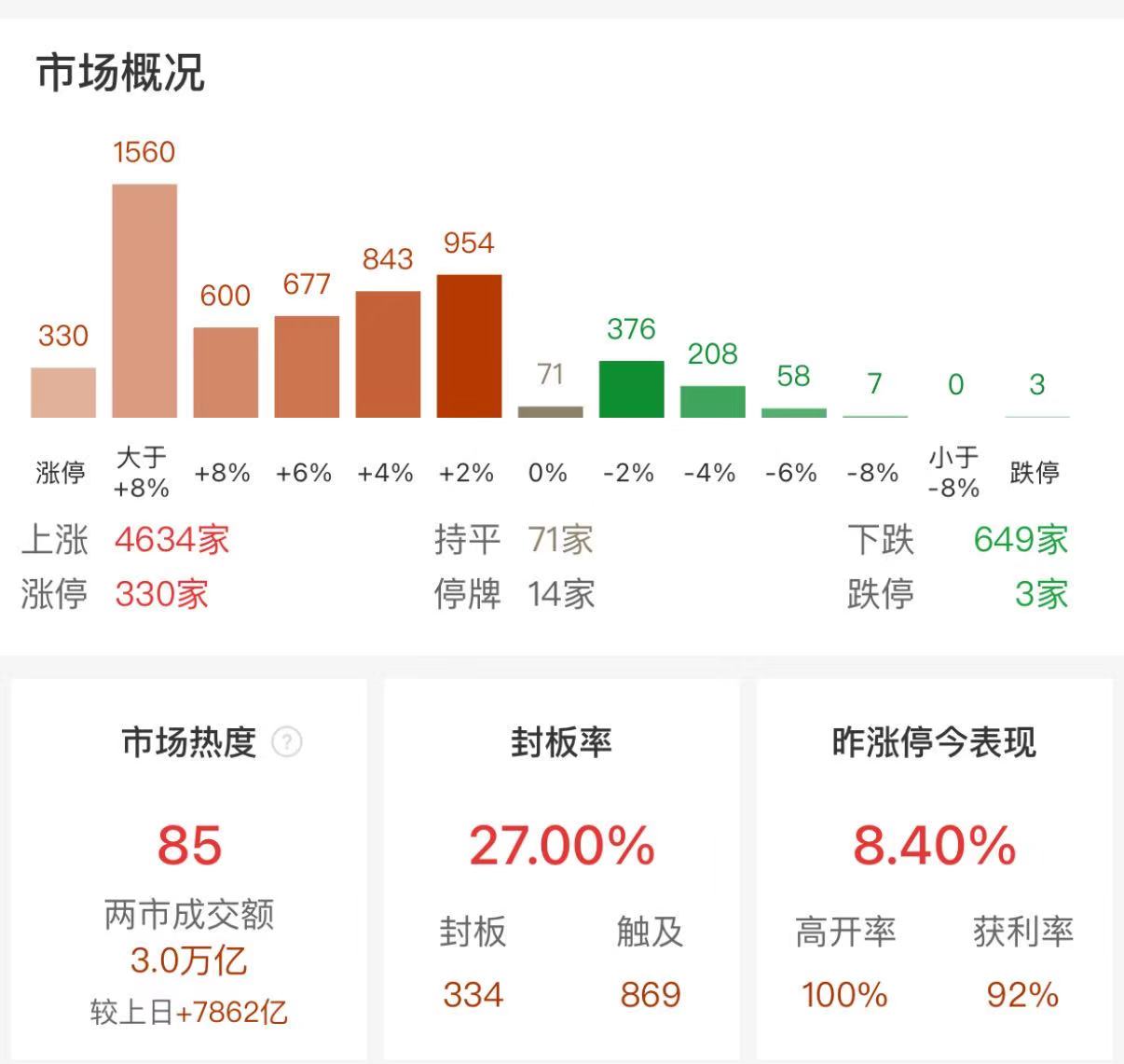 财联社10月8日电,据财联社盯盘数据显示,沪深两市成交额突破3万亿元,较上一交易日此时放量超7800亿元。